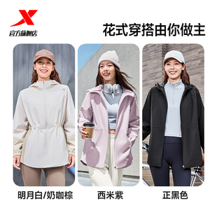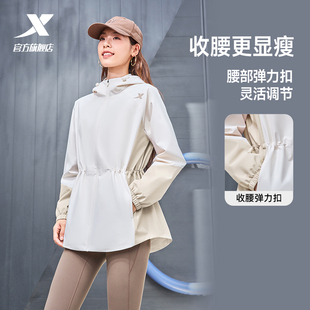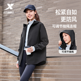 特步加绒外套女士秋冬新款 休闲运动上衣保暖冲锋夹克风衣 训练女装
