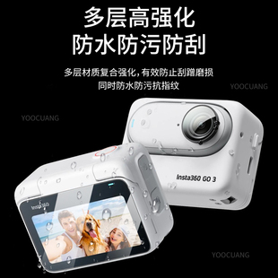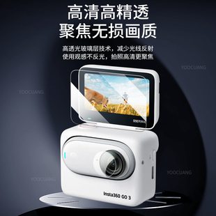 适用影石Insta360go3钢化膜拇指相机影石360 Go3S钢化膜相机膜go3S屏幕保护膜硅胶套影石go3配件保护套