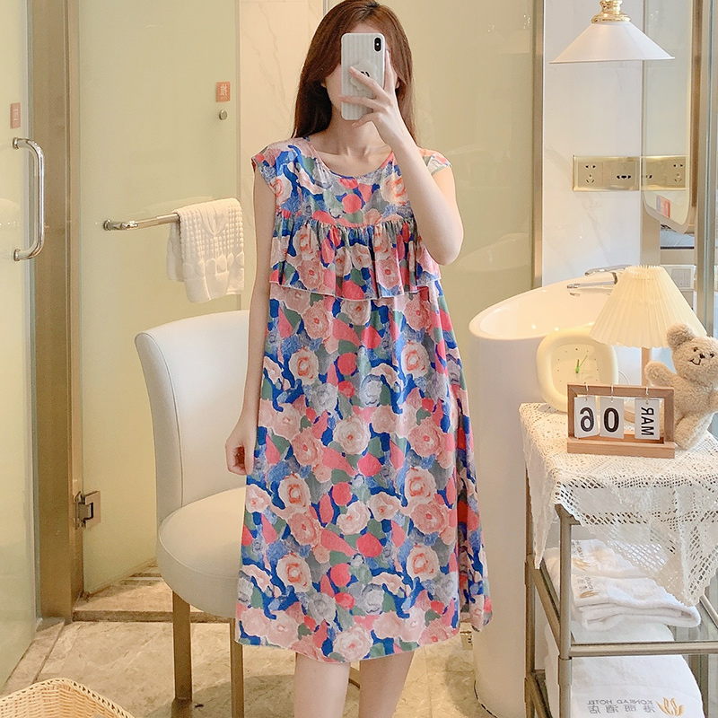 睡衣大码 轩靓 睡裙女春秋纯棉长袖 2025新款 超长裙家居服 带胸垫