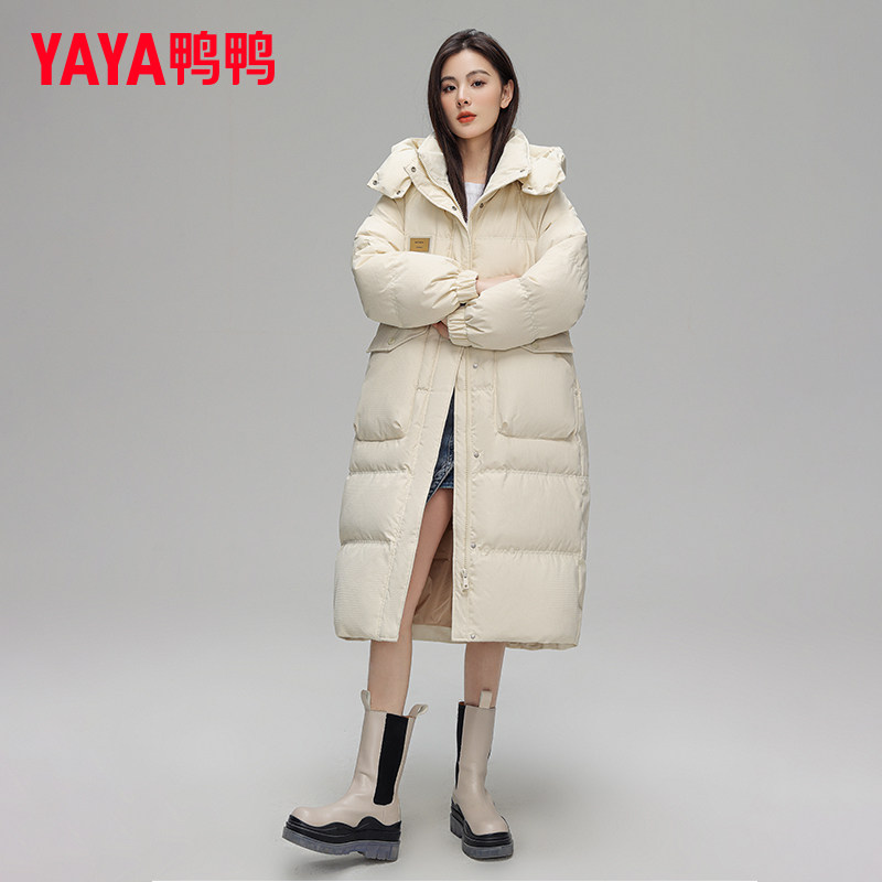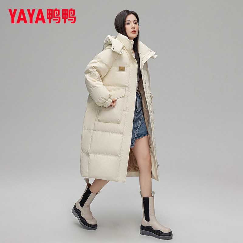 时尚 2023年新款 连帽加厚长过膝品牌潮外套KL 羽绒服女冬季 鸭鸭长款