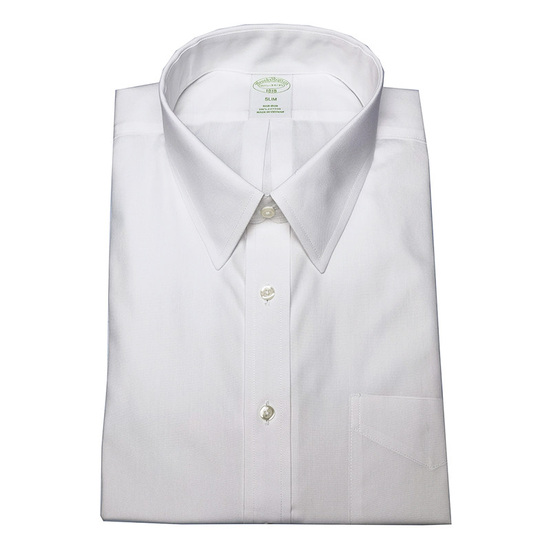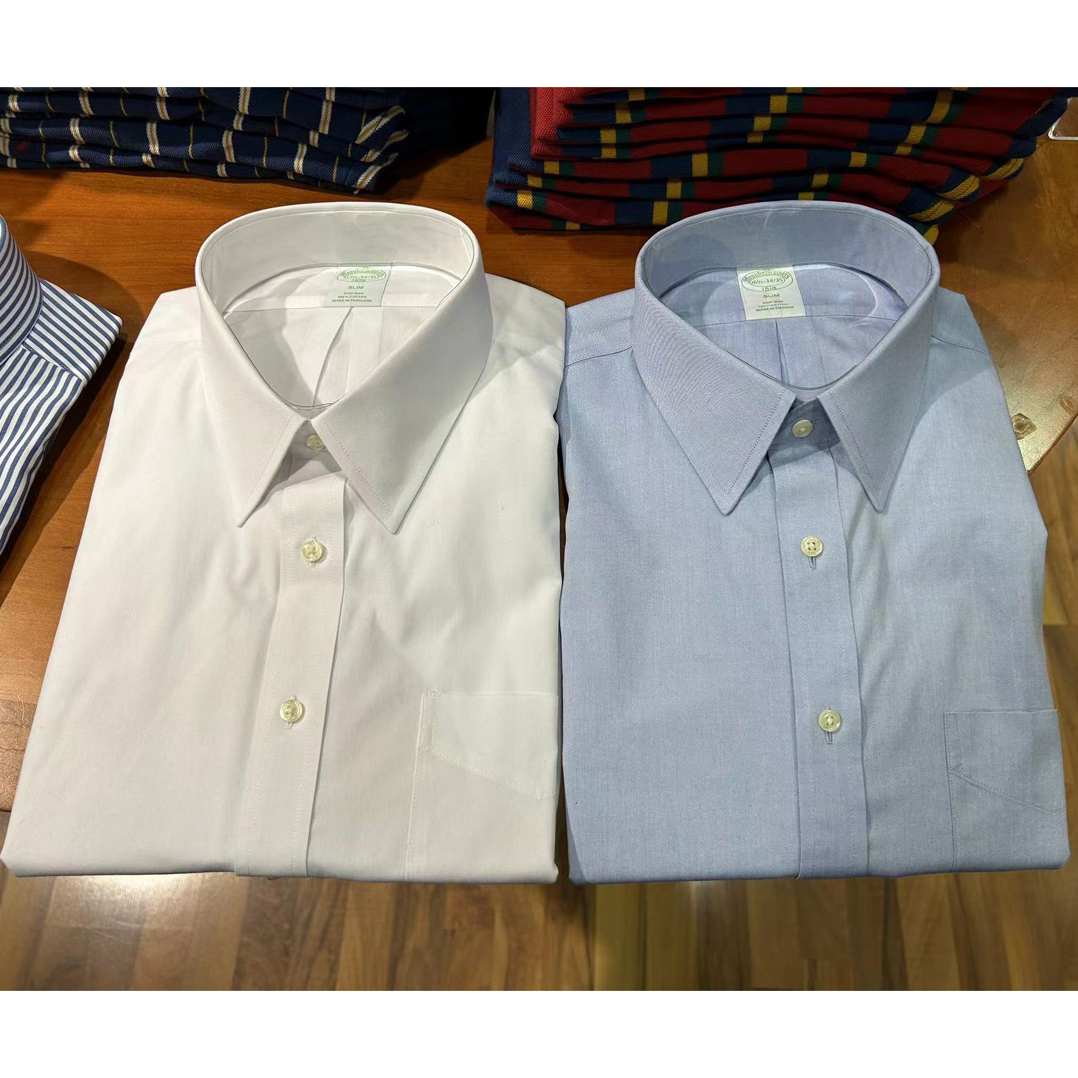 商务 纯棉长袖 Slim白色蓝色免烫衬衫 BrooksBrothers布克兄弟修身