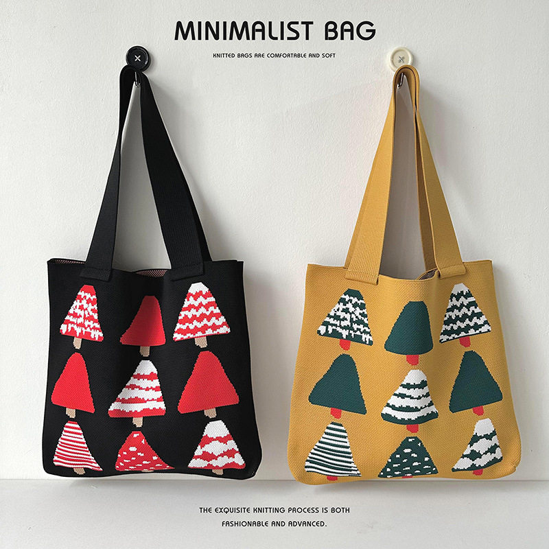 圣诞单肩针织包大容量通勤手提袋时尚 伴手礼 潮流圣诞树托特包新款
