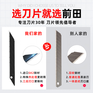 前田美工刀刀片尖角小号30度墙纸刀壁纸刀裁纸刀汽车贴膜专用黑刃