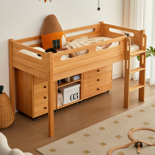 金多喜儿童半高床高架床储物床带书柜斗柜衣柜床进口榉木爬梯床架
