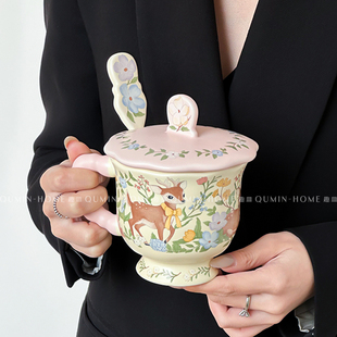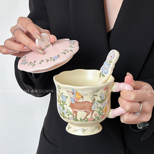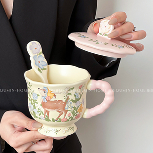 肆月奶油风马克杯釉下彩陶瓷杯高颜值水杯咖啡杯家用情侣儿童杯子