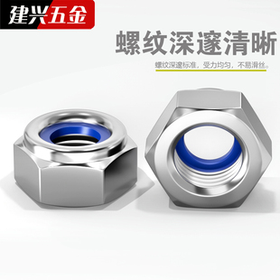 304 201不锈钢锁紧螺母防松尼龙六角防滑自锁螺丝帽M3M4M5M6M8M30