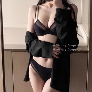 六只兔子性感蕾丝内衣女小胸聚拢显大纯欲风高级黑色套装 文胸
