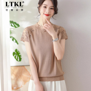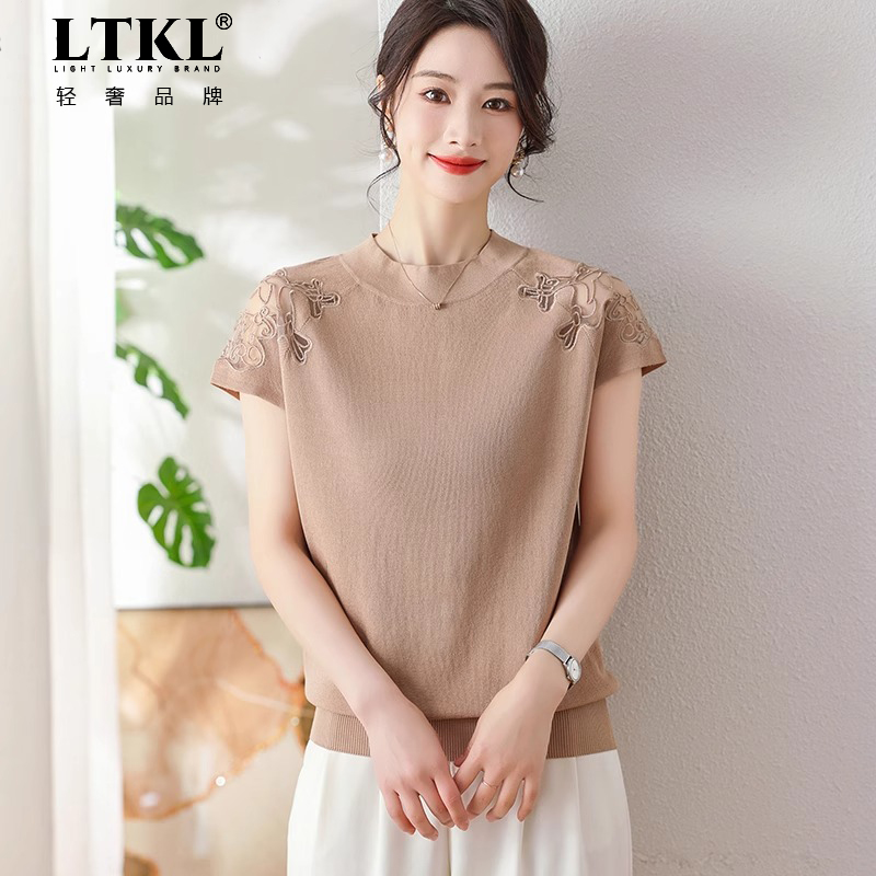 2025新款 T恤小衫 中老年女洋气宽松舒适针织上衣 冰丝短袖 妈妈夏装