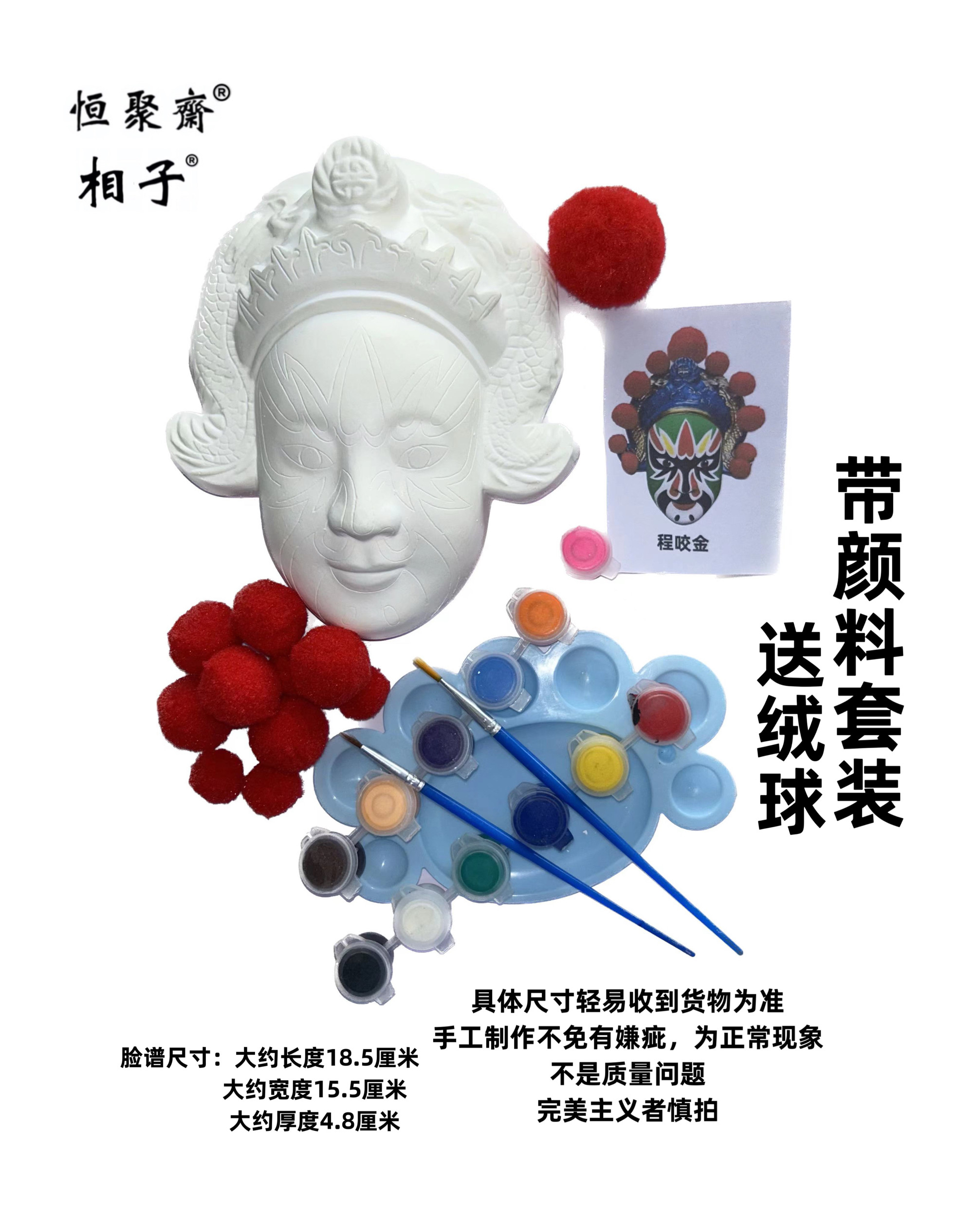 2024新款 文化不可佩戴石膏白模 18.5厘米帽饰京剧脸谱DIY材料手工