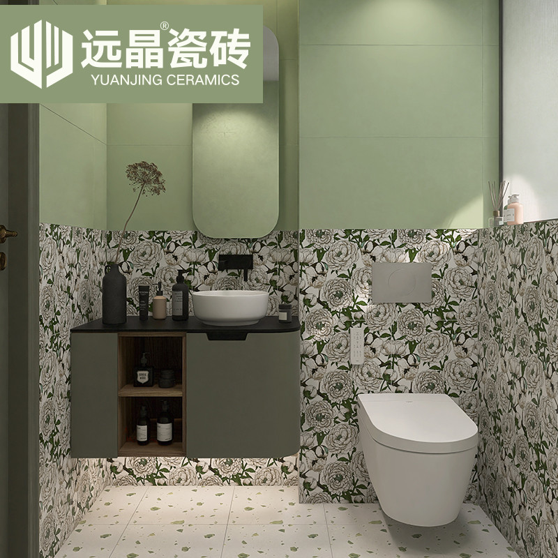 远晶 牛油果绿花砖厨卫瓷砖全瓷砖柔光墙砖地砖奶油风 400X800法式