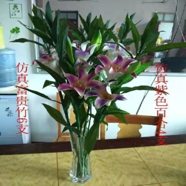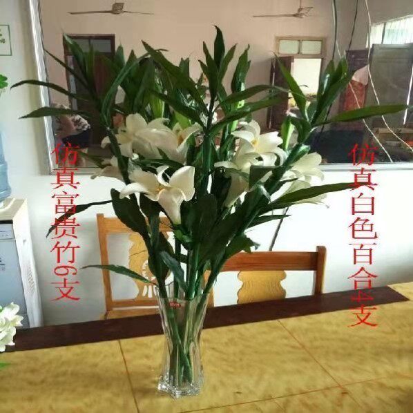 仿真富贵竹假花竹百合套装 饰绿植花艺 田园客厅摆件房间假花绢花装