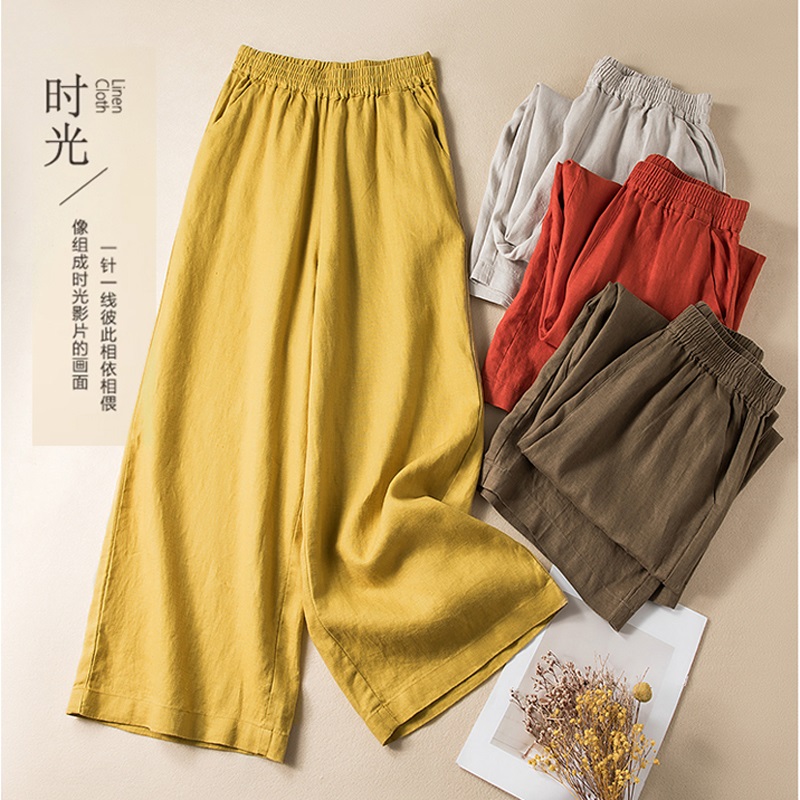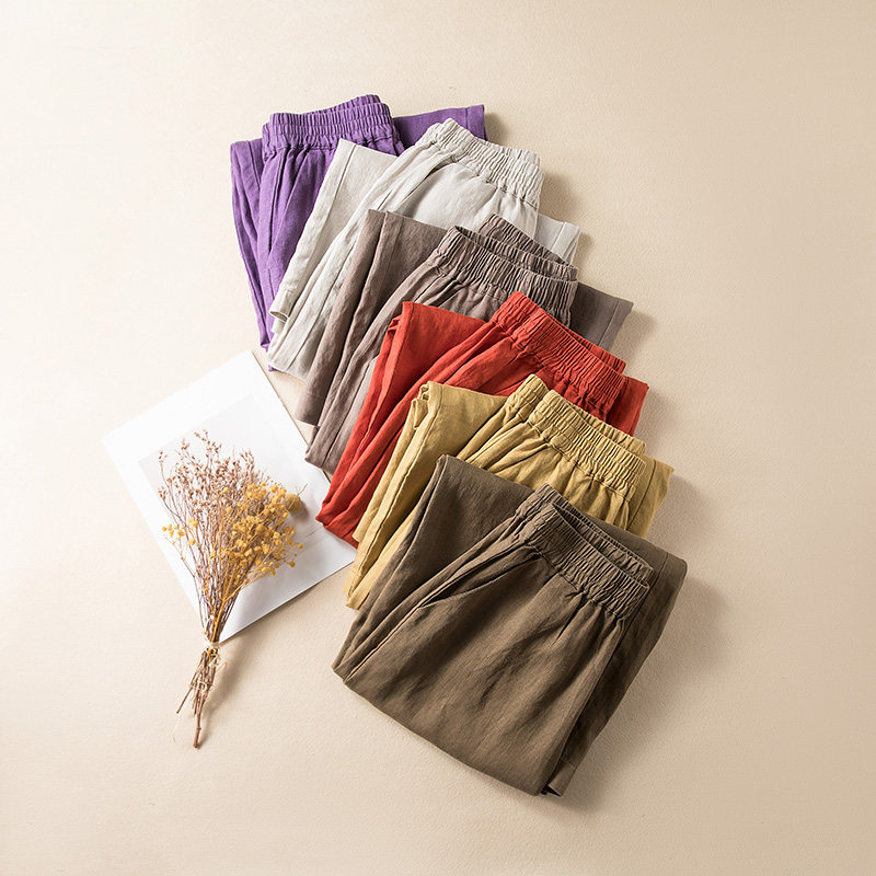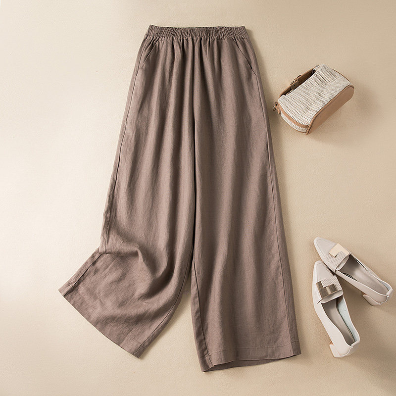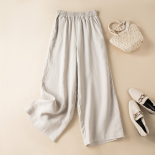 子休闲高腰直筒九分裤 女宽松麻裤 高端纯亚麻紫色阔腿裤 2026春夏季