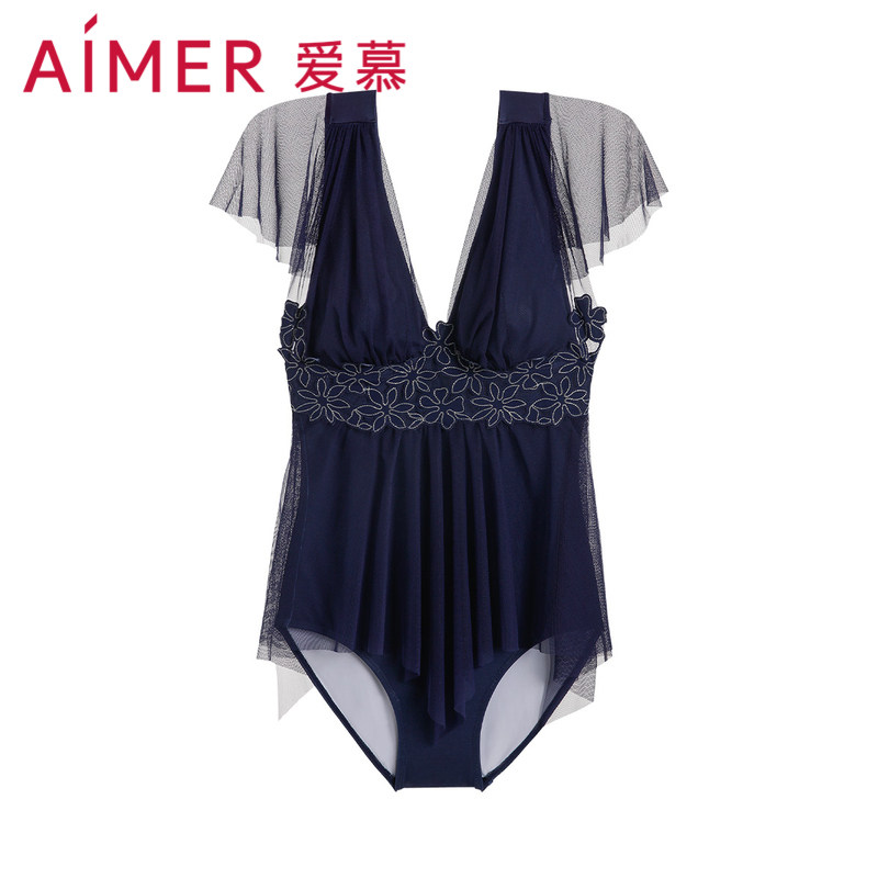 爱慕蕾丝连体显瘦遮肚泡温泉保守性感泳装 泳衣AM688052