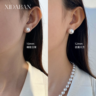 西大班 冷白极光人造澳白珍珠耳环维纳斯无耳洞耳夹925纯银耳钉女