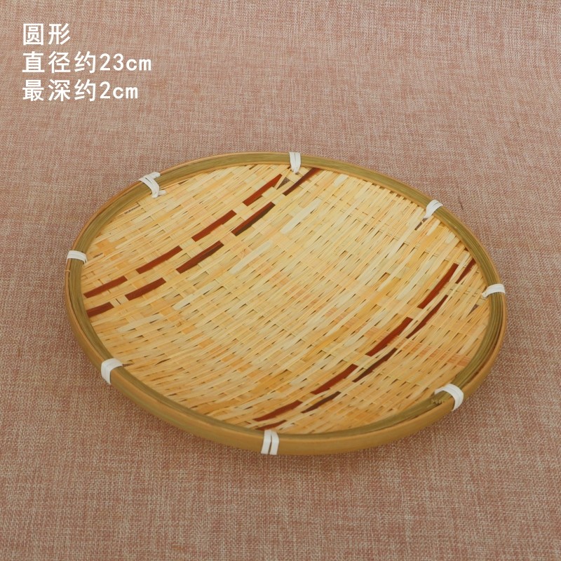 中式 手工编织果盘藤编圆形水果盘篮防水干果托盘收纳竹雕竹编制品