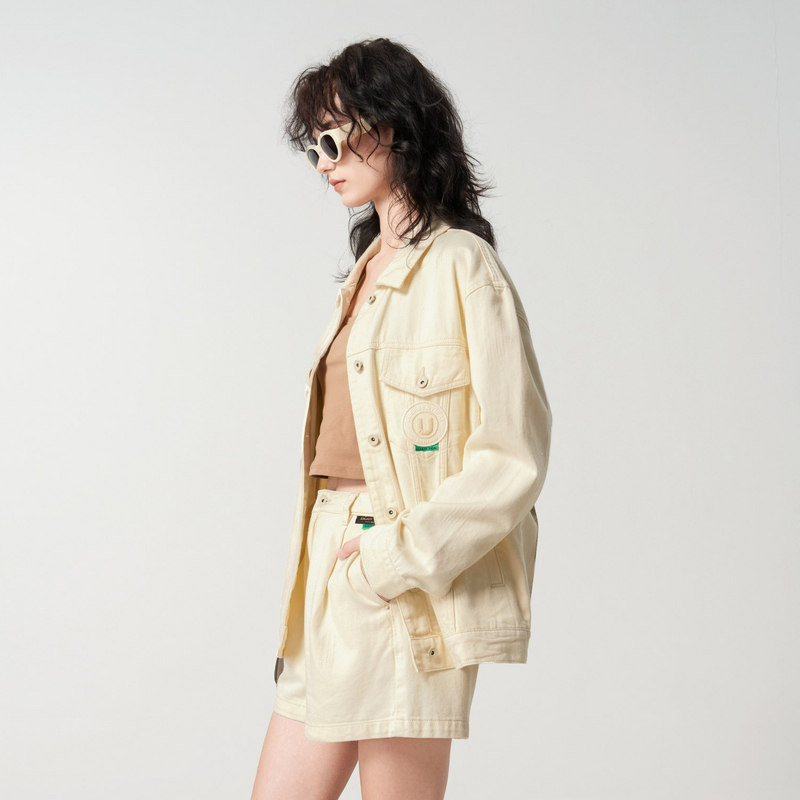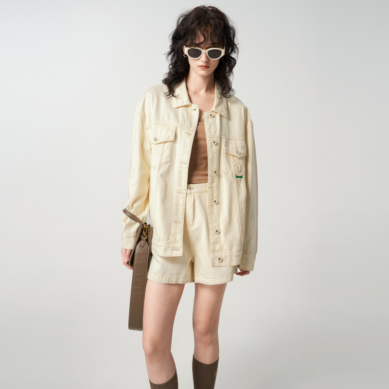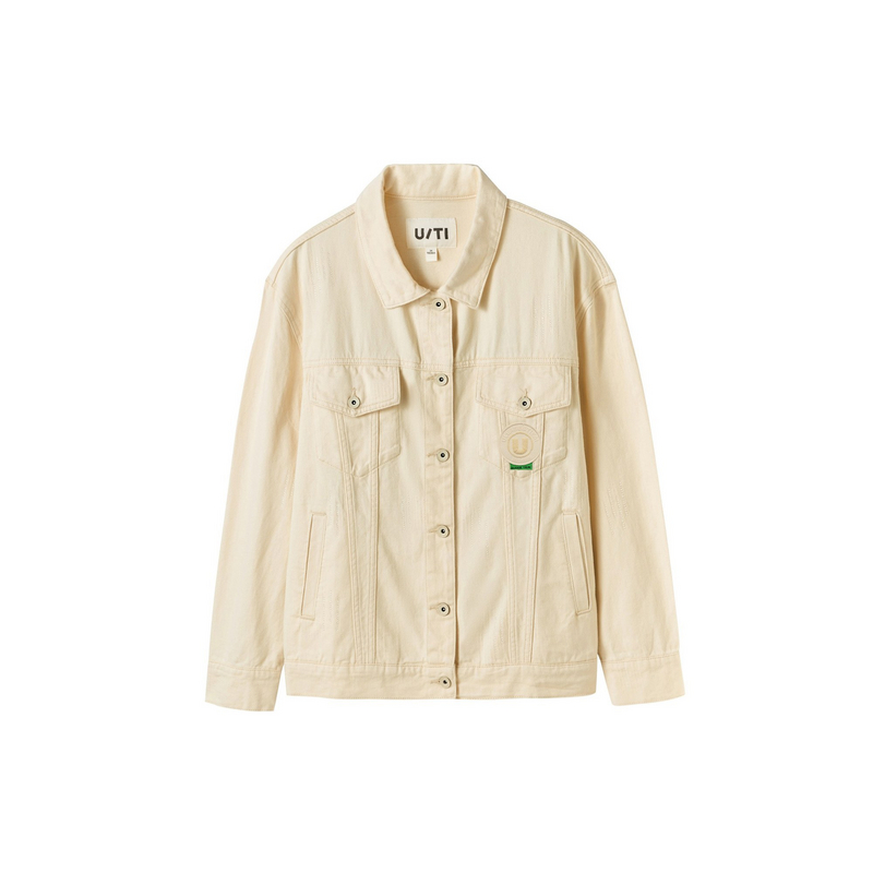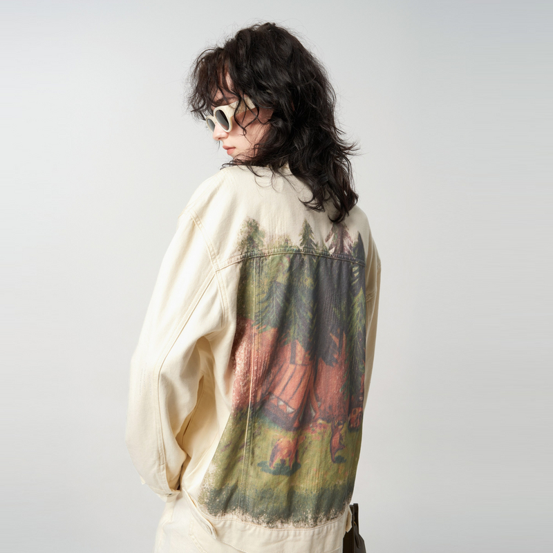 新款 秋季 TI后背森林印花白色牛仔外套女设计感外搭上衣尤缇时尚