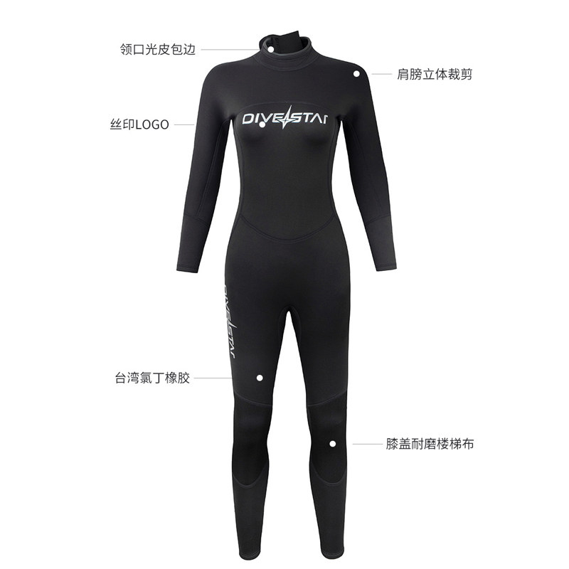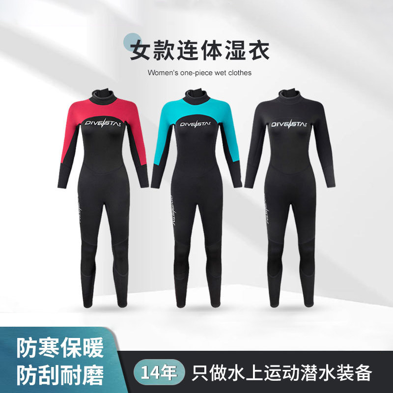 DIVESTAR潜水服女连体保暖3mm冲浪潜水衣长袖 防寒浮潜水母服湿衣