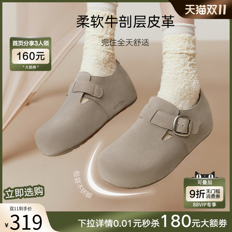 棉鞋 真皮厚底加绒勃肯鞋 百思图25秋冬商场新款 女单鞋 香草慕斯