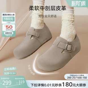 单鞋 真皮厚底灰色勃肯鞋 百思图26春商场新款 内增高女 香草慕斯