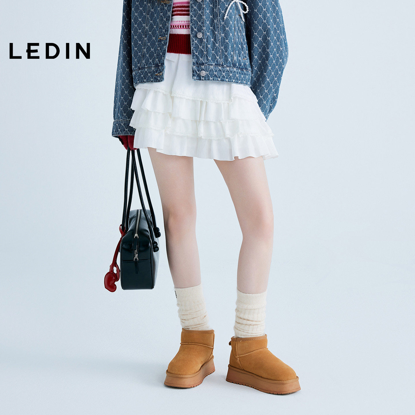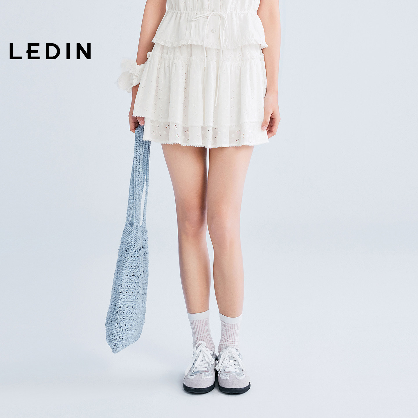 新款 乐町甜美小白裙秋季 蛋糕裙A字半身裙C1GEF3128 商场同款