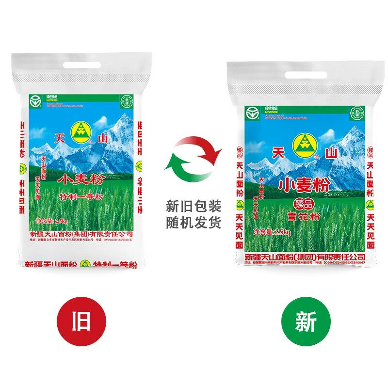新疆天山面粉无添加工厂直发5kg特一级粉中筋雪花牌全麦精制面粉
