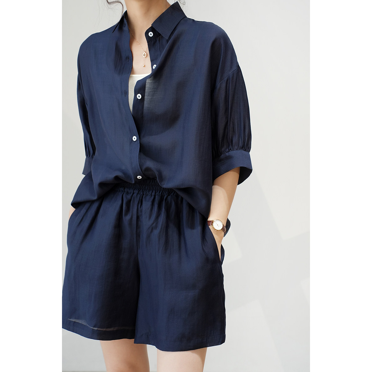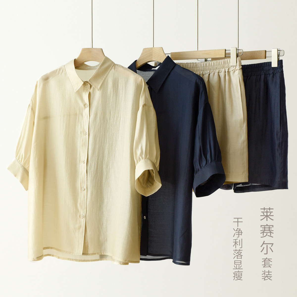 薄外套 衬衣开衫 阔腿短裤 夏款 单件拍 女装 女士莱赛尔泡泡袖