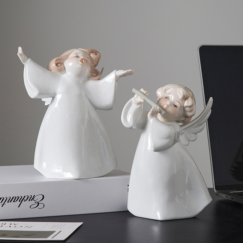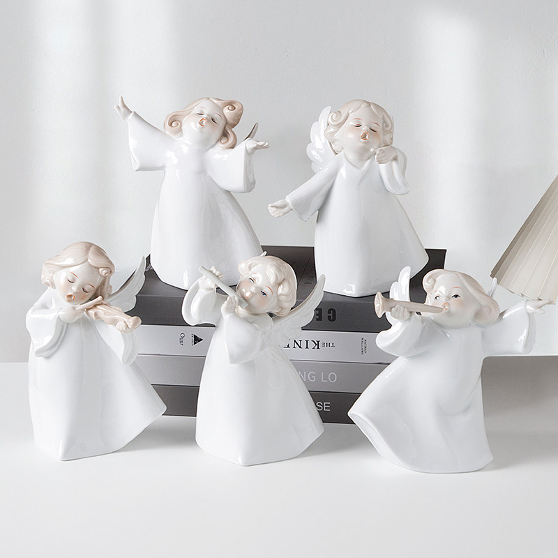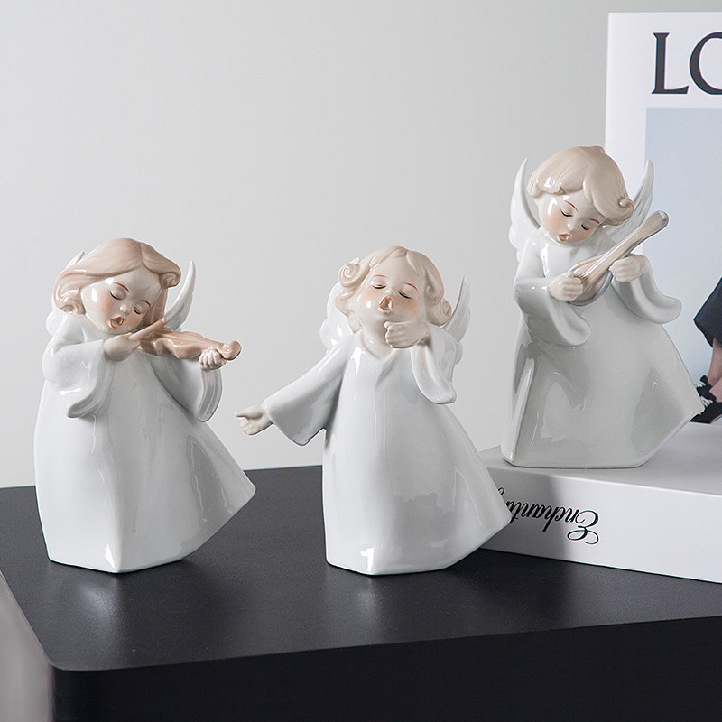 欧式 饰品女孩房间玄关桌面摆件 陶瓷音乐小天使摆件电视柜酒柜装