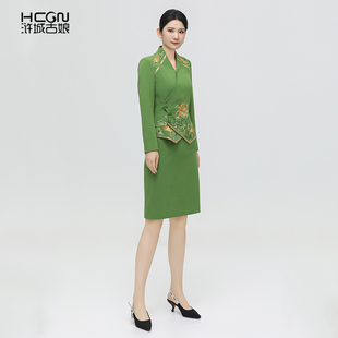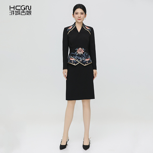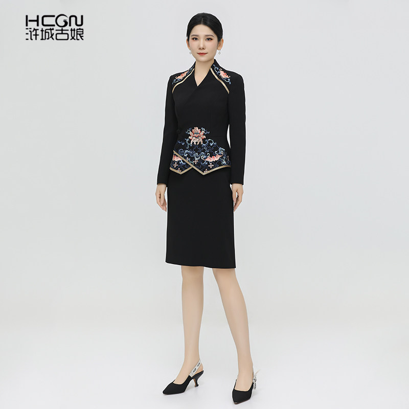 显瘦职业休闲女士显白气质套裙 缠枝刺绣修身 浒城古娘时尚 套裙秋季