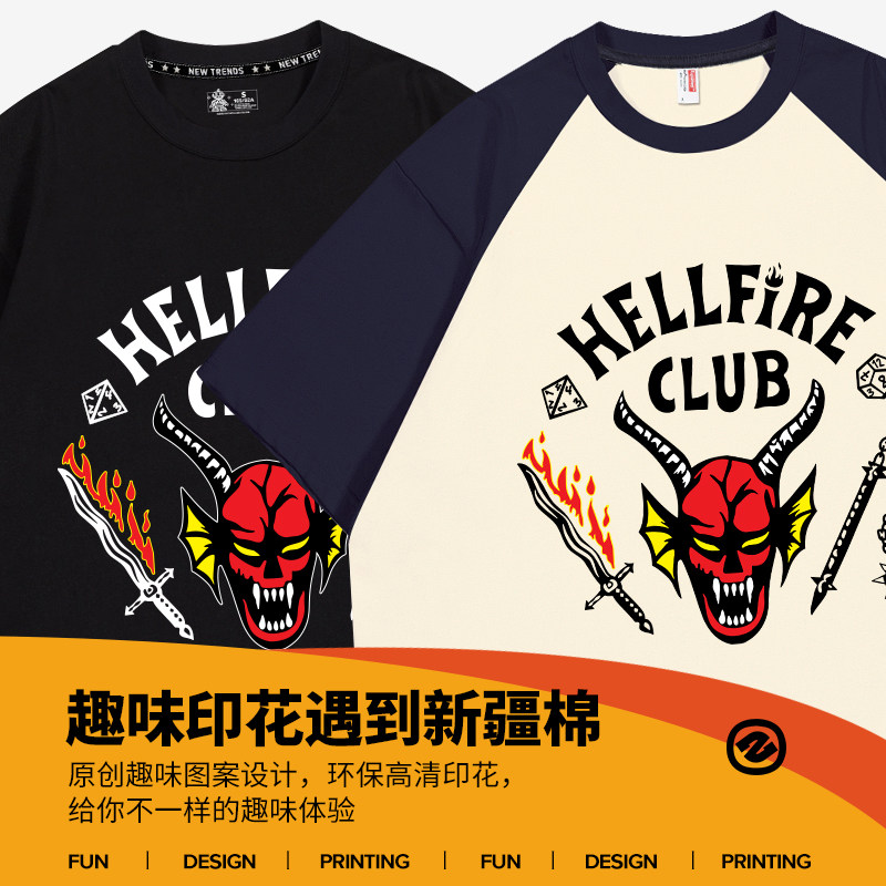 衣服 短袖 zpbw美剧怪奇物语周边T恤Hellfire Club地狱火俱乐部同款