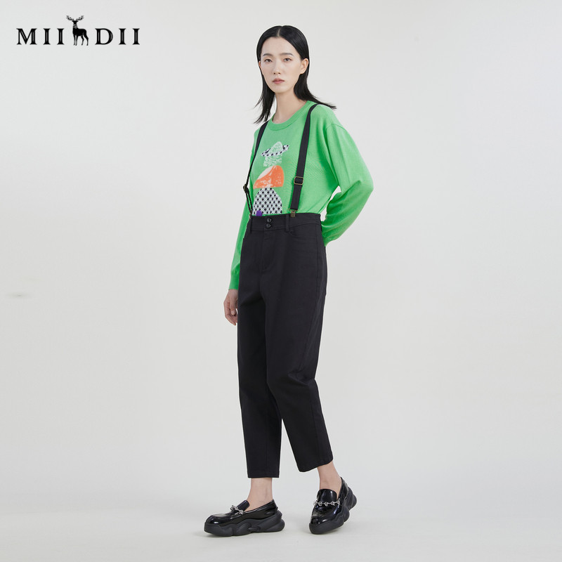 简约百搭可拆卸背带休闲裤 新款 女231MK0161 女2023春季 谜底长裤