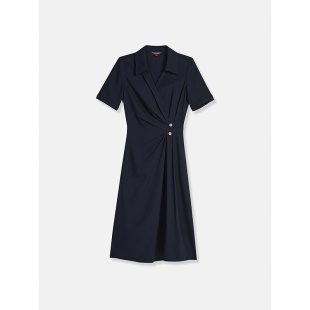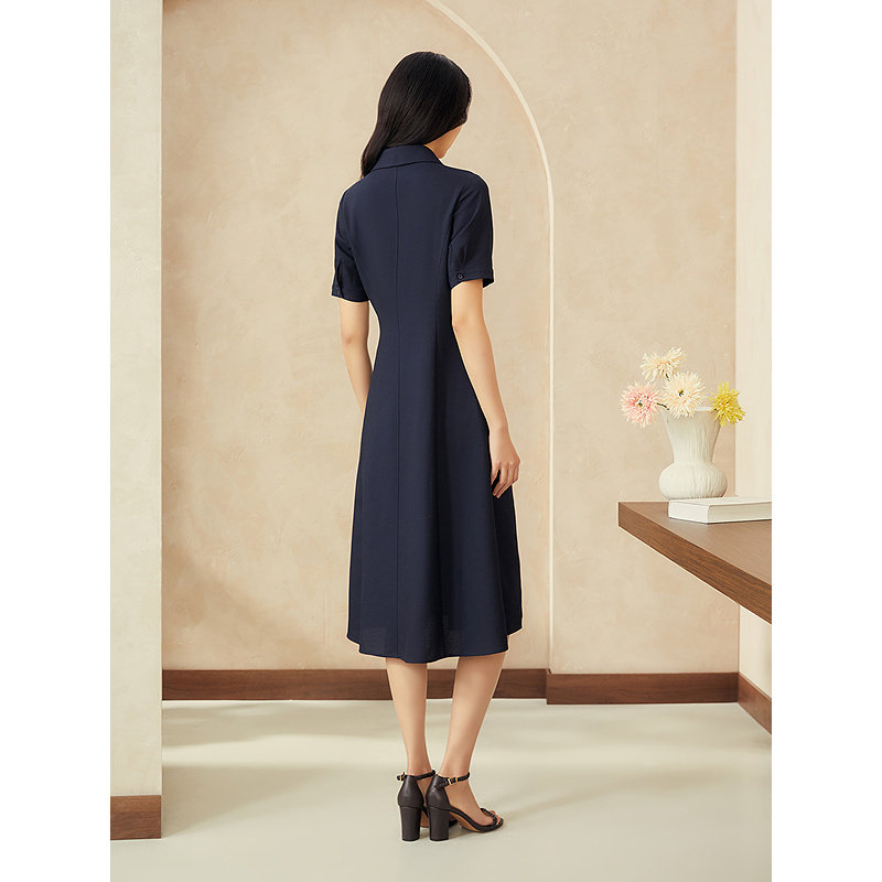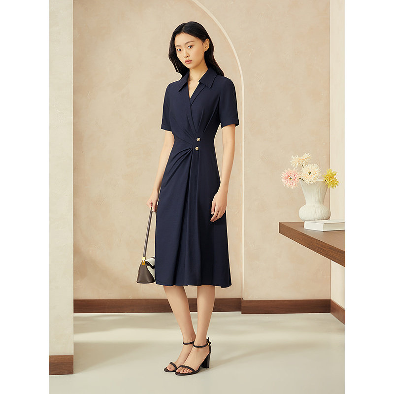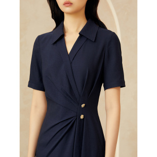 式 YINER音儿专选2025夏季 衬衫 法式 小V领仿麻透气收腰连衣裙 新款