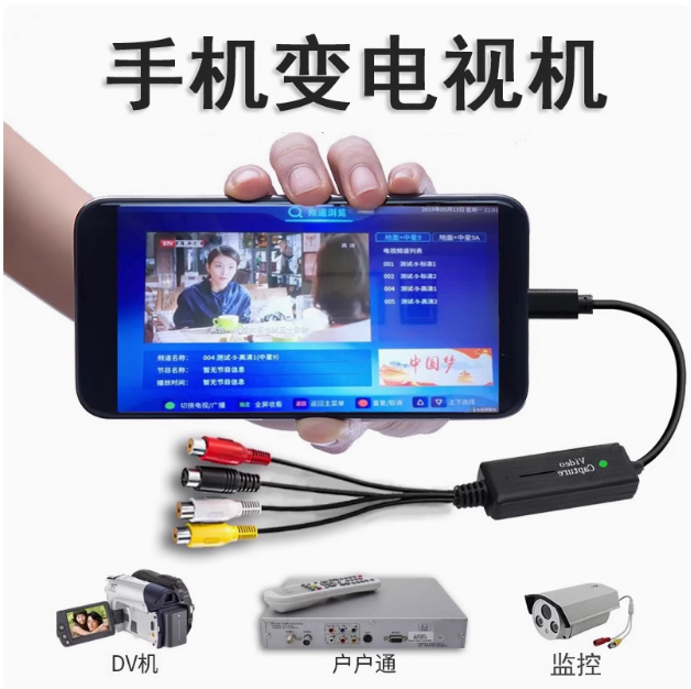 监控调试工程宝模拟摄像头录像机老式 c手机当显示器 AV视频转Type