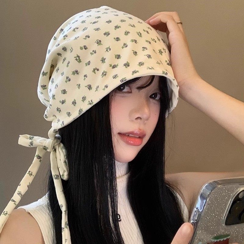 碎花绑带包头堆堆帽女产后显脸小头巾夏天空调房月子帽大头围薄款