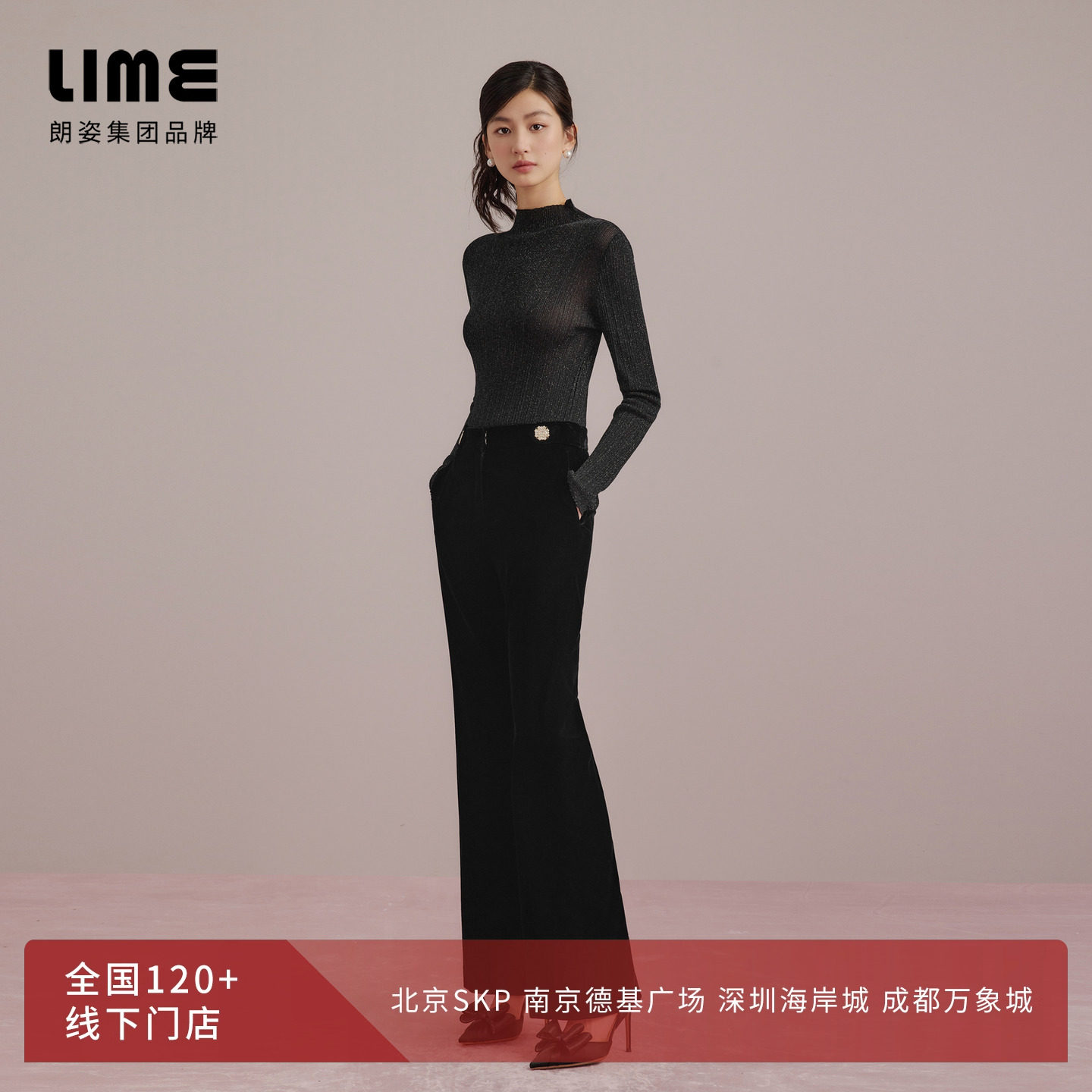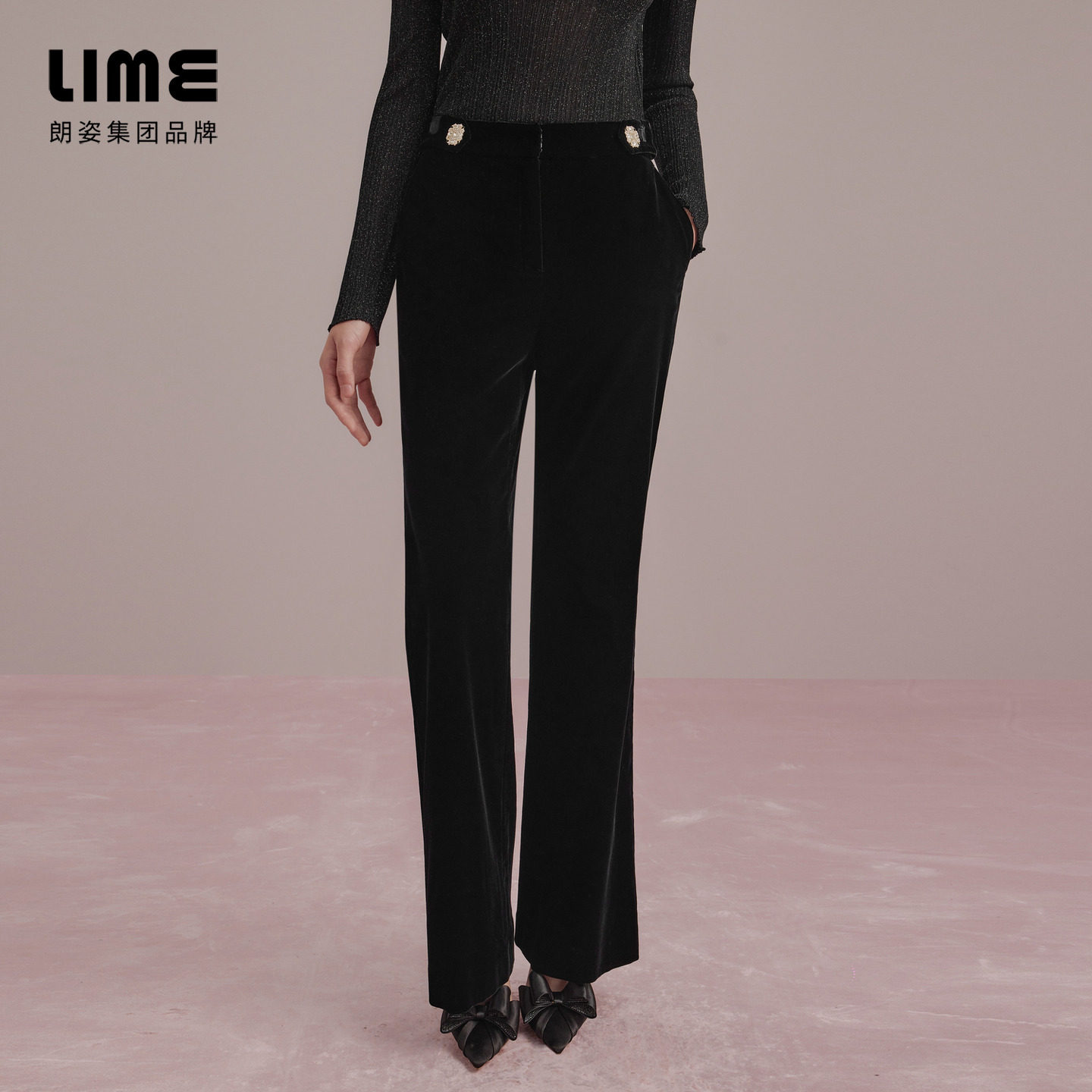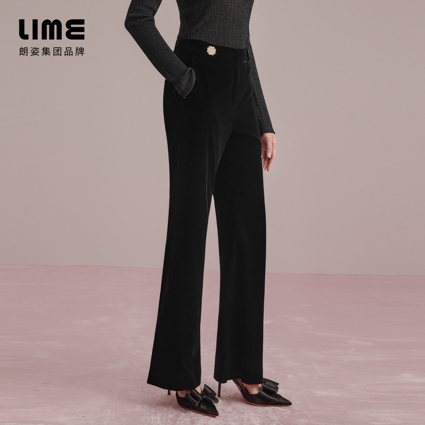 显瘦通勤长裤 朗姿集团LIME莱茵轻奢高腰垂感丝绒裤 子黑色25秋新款