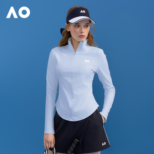 T恤女士 透气速干网球运动长袖 AO澳网时尚 舒适灵活半拉立领修身