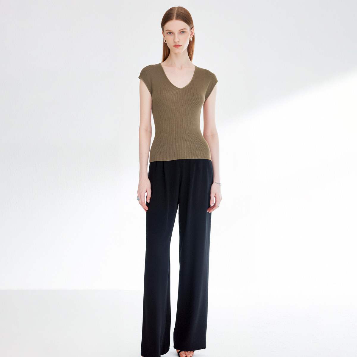 62%粘纤 纯色毛针织衫 兰 V领套头包臂袖 601 春装 269