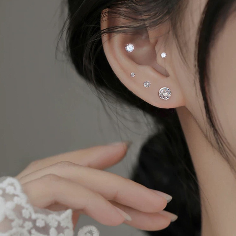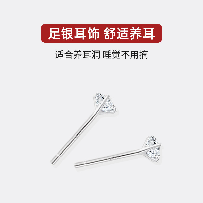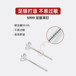 赵露思同款 S999纯银锆石耳环日常通勤耳饰 养耳洞耳钉女2026年新款