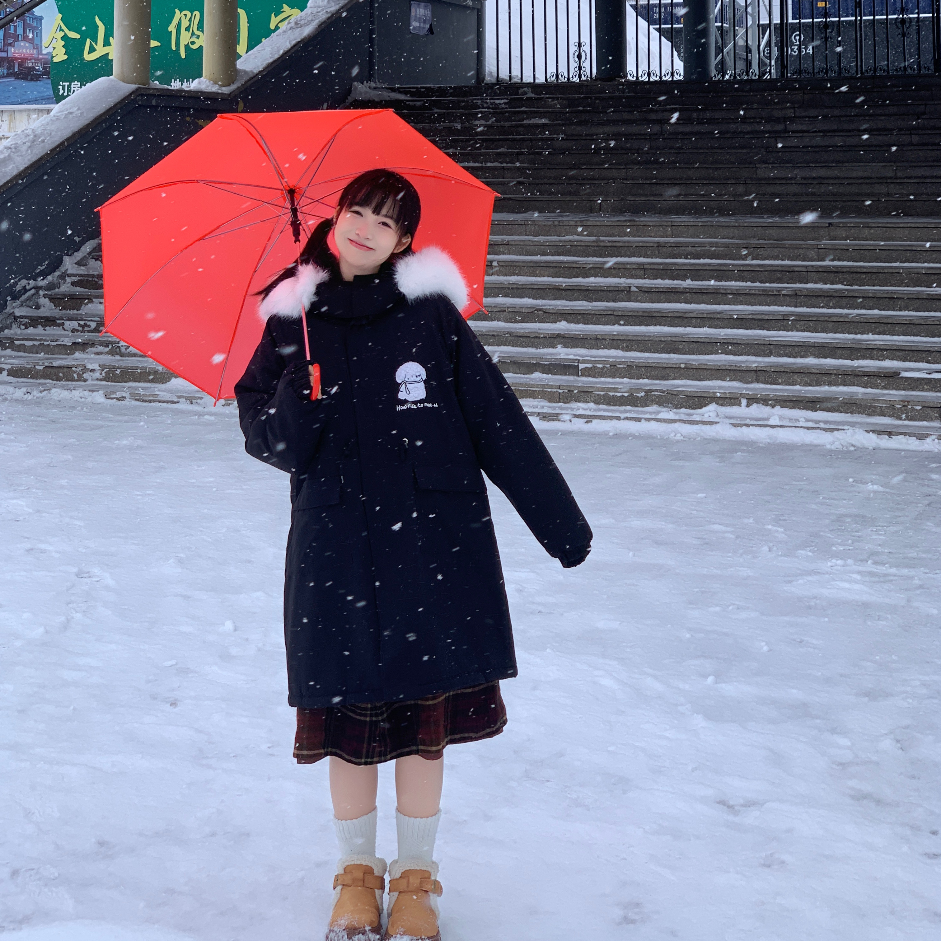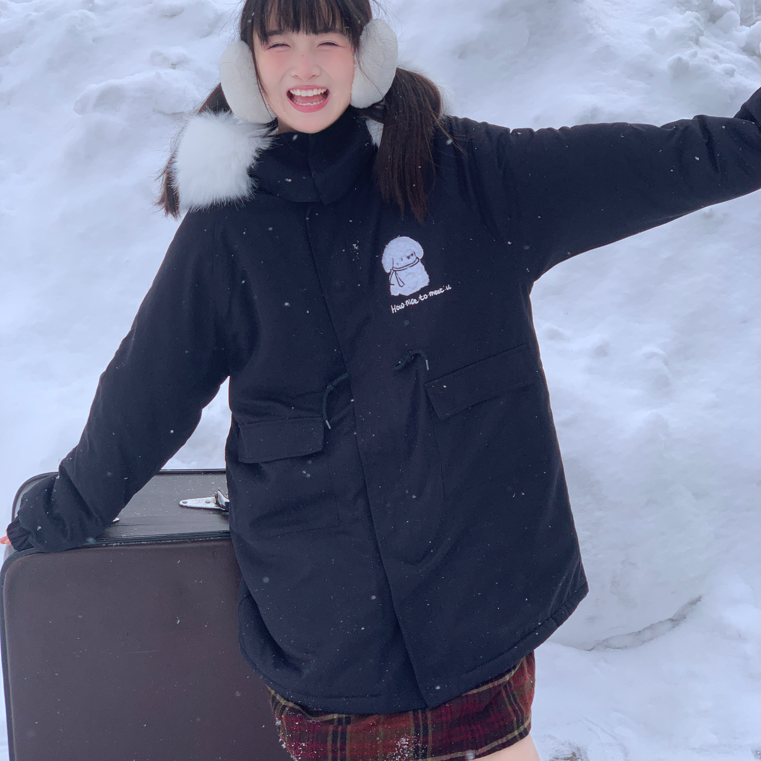 Aurocean 学院羊毛呢大衣炭灰色双面呢廓形风衣外套 长度刚刚好