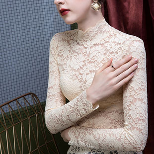蕾丝打底衫 半高领镂空薄款 女加绒t恤雷丝上衣高级感 2025新款 秋装