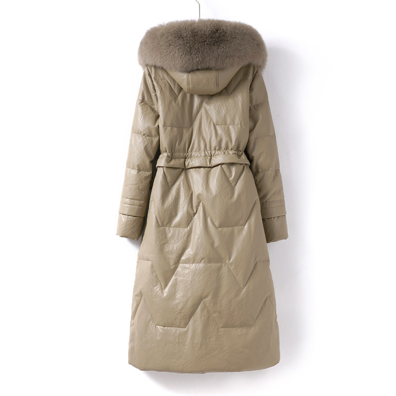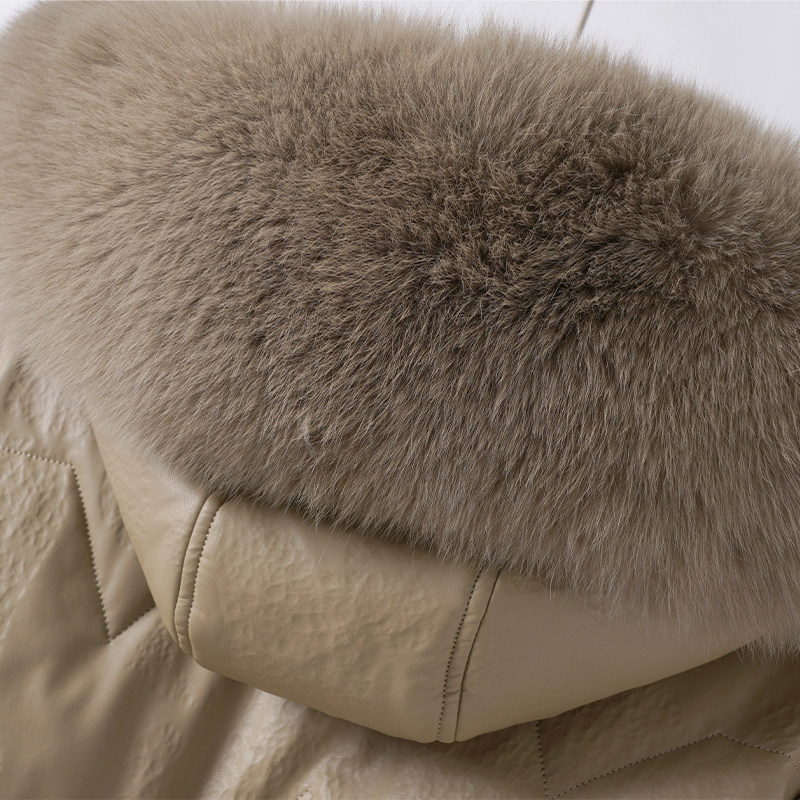 海宁皮衣女中长款 真皮羽绒 连帽狐狸毛领90白鸭绒绵羊皮外套新款