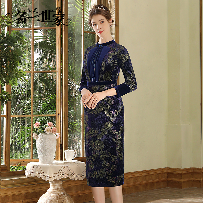 名兰世家轻奢高级感丝绒珍珠高贵大牌法式 连衣裙小众原创设计款