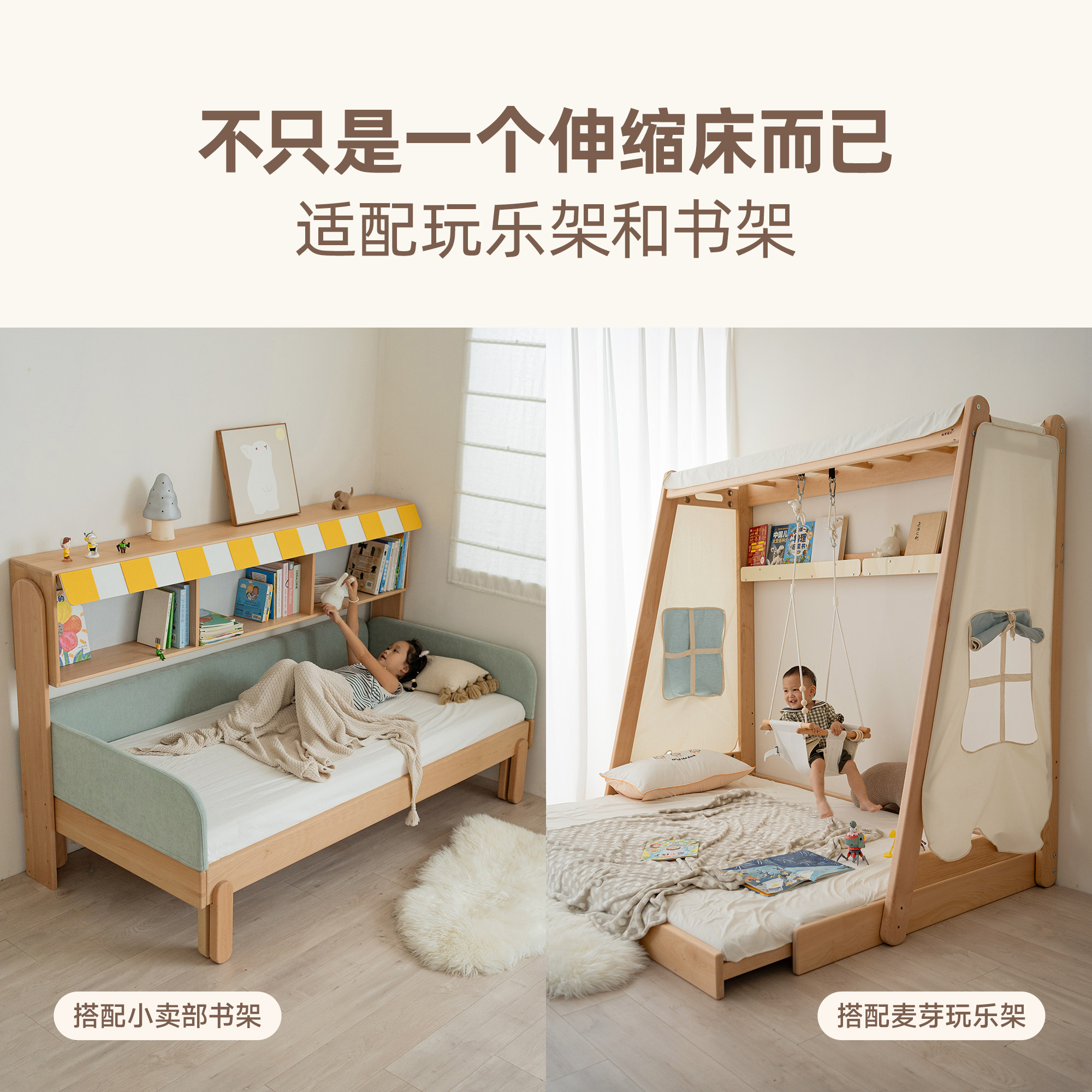 实木儿童伸缩床宝宝婴儿拼接抽拉边床 多模式 玩梦超人 麦芽成长床