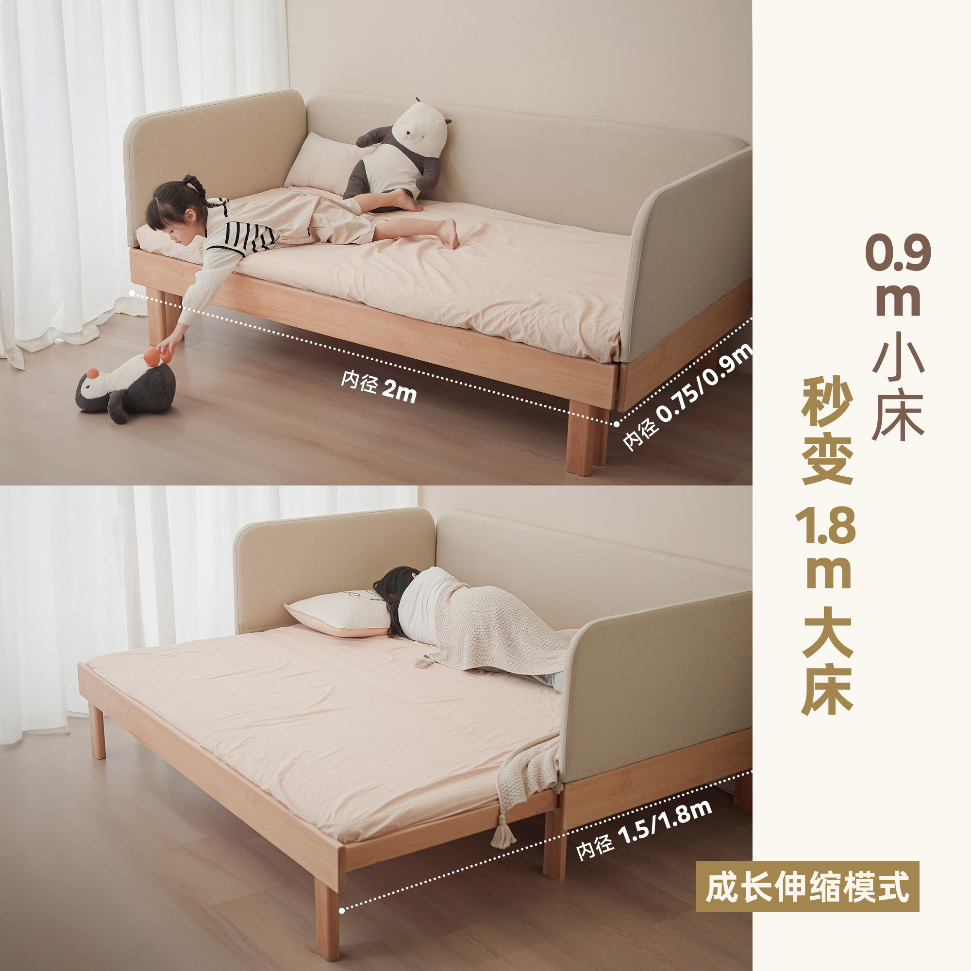 橡胶木实木床小户型实木沙发床榻榻米家用单人床儿童抽拉床伸缩床