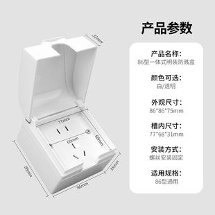 明装 插座防水盒86型浴室明线面板开关防水罩户外一体五孔防水插座