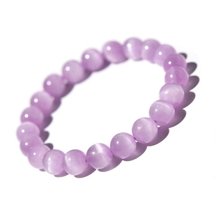 紫色系带猫眼水晶锂辉石手串饰品礼物 女款 天然紫锂辉圆珠款 手链