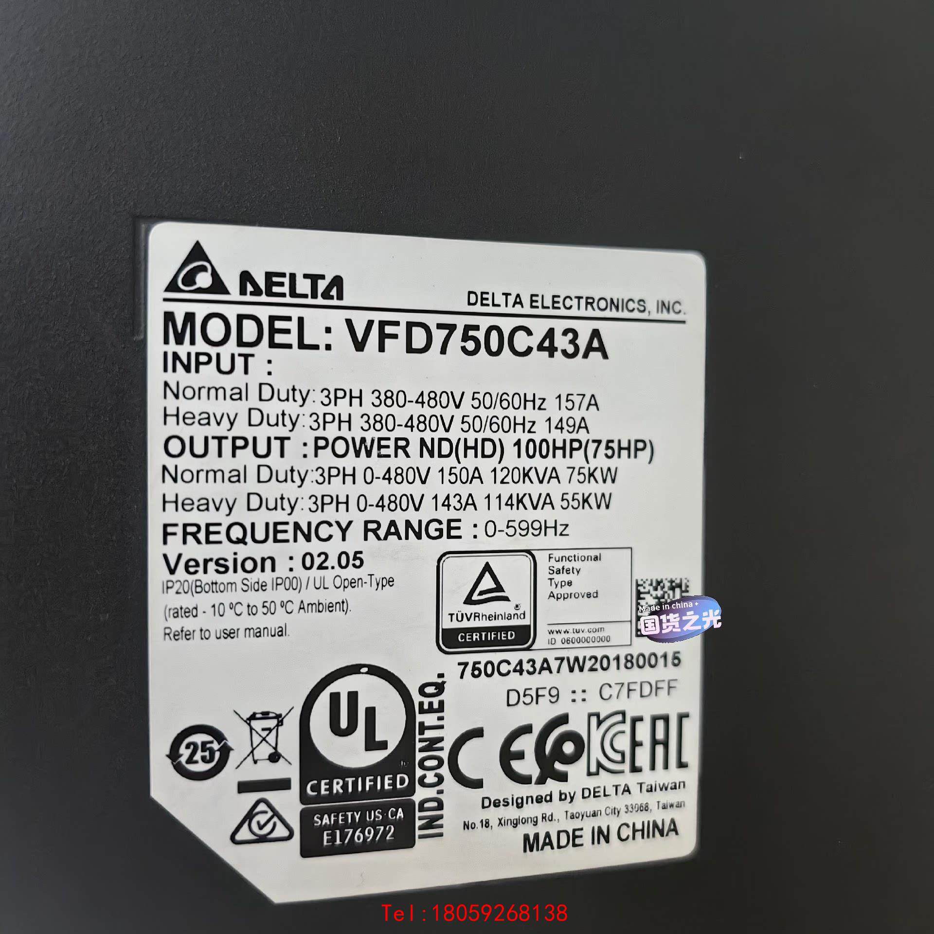 2020年口罩机器退 台达75KW变频器VFD750C43A 非标价