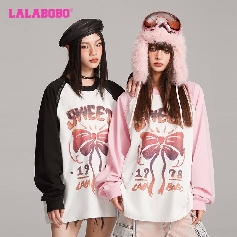 长袖 LALABOBO25春T恤原创新款 拼色甜酷潮上衣 希林娜依高同款