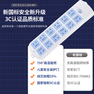 良工插座电源插线板接线板带开关多功能家用插排排插 无线不带线