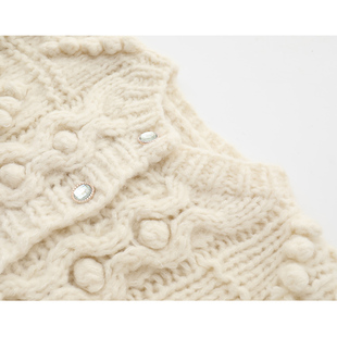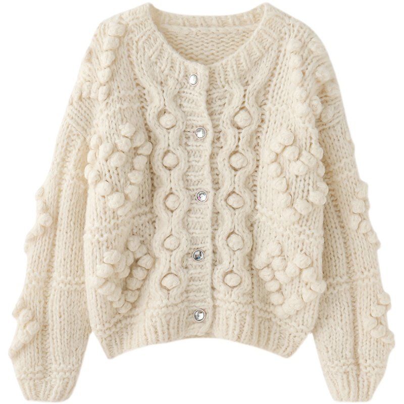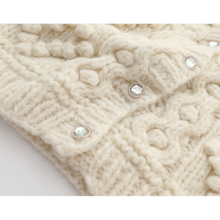 毛衣外套保暖上衣 女重工宽松加厚短款 秋冬新款 豆豆棒针织圆领开衫