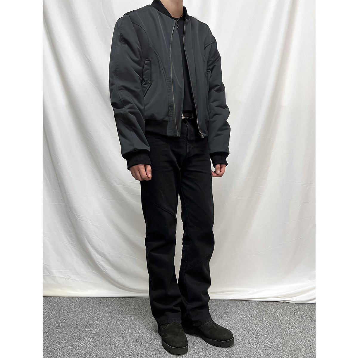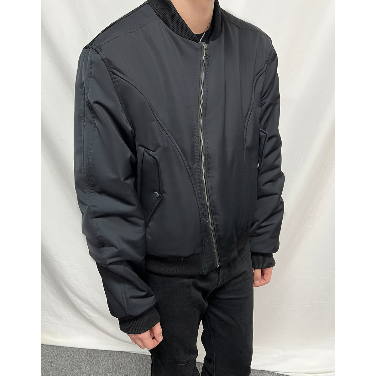 23FW弯刀弧形拉链裁片bomber空军棉夹克2.0 EXISTENCE